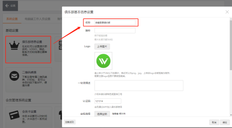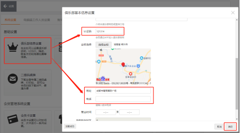 2、点击:设置——系统设置——俱乐部信息设置,更改俱乐部名称/认证码/地址和电话
