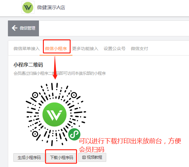 2、下面会出现一个小程序码,会员直接用微信扫码进去授权登录即可