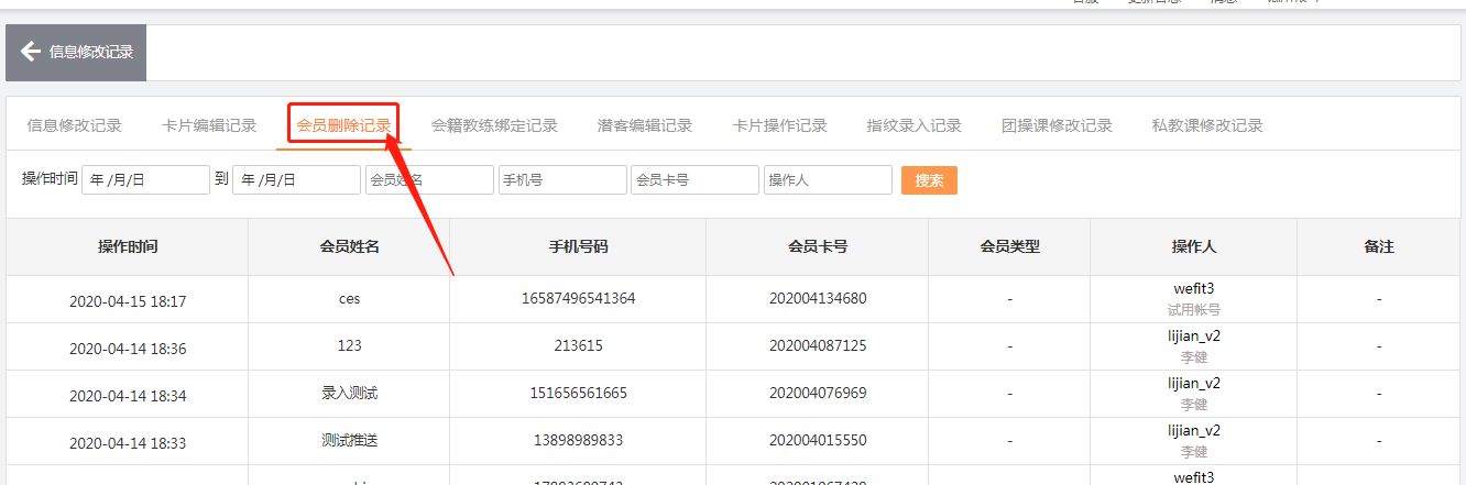 导致这种情况是因为直接把会员信息删除了,但是没有删除对应卡的充值记录,可以到财务版块--信息修改记录--会员删除记录核实会员是否有被删除(核实后可以直接到充值记录进行删除解决这个问题)