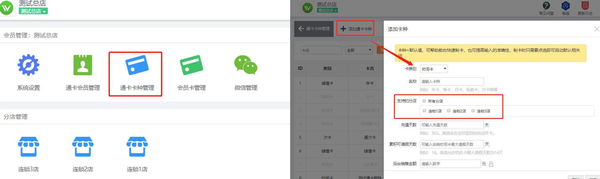 1、首先需要在总店账号里面把通卡卡种设置好