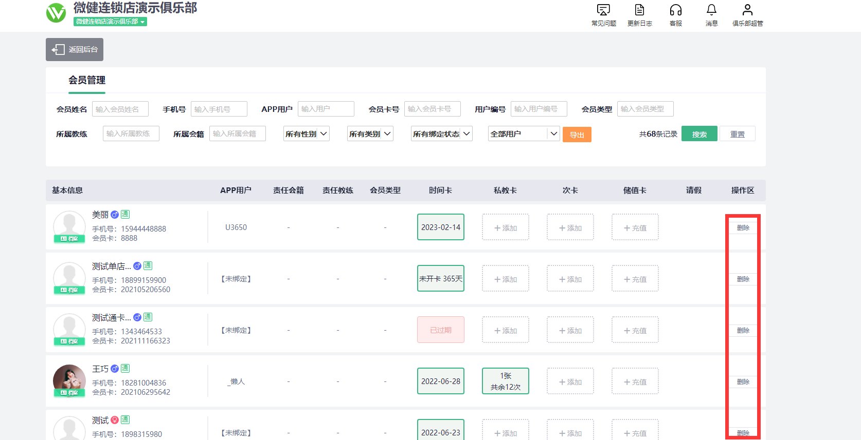 1、登录总店账号,点击“通卡会员管理”-搜索到需要删除的会员,删除就好